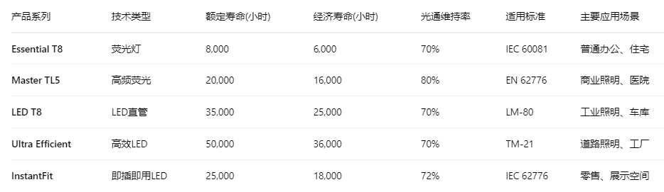 飞利浦灯管的使用寿命体系建立在严格的国际标准测试基础上,通过科学的光衰曲线管理和质量控制,为不同应用场景提供可靠的照明解决方案。